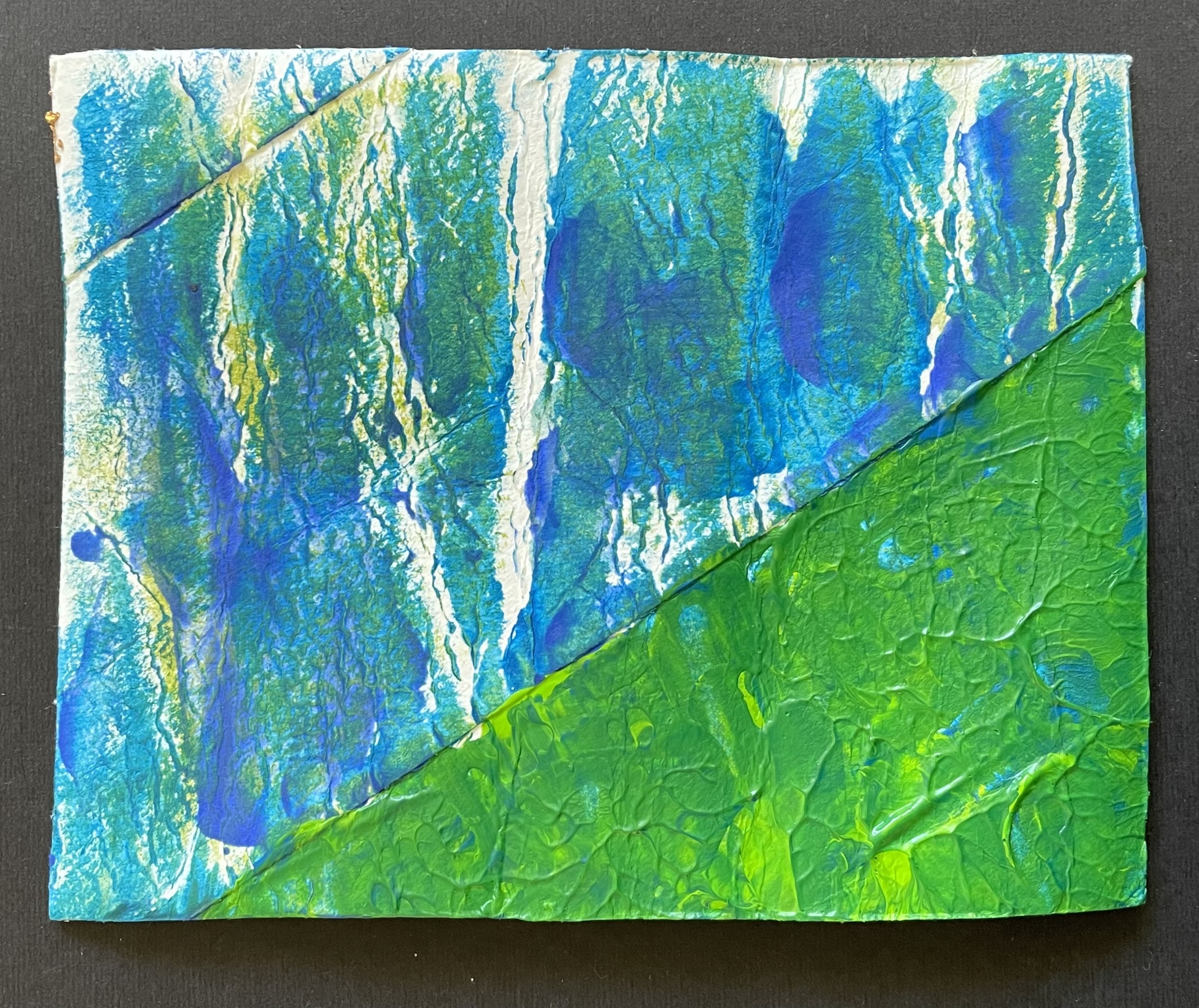 i often have no idea what i want to paint, and sometimes even why i paint, especially on harder days. in those moments i tend to pick up a piece of recycled something, randomly pick a few colors, and then push paint around.