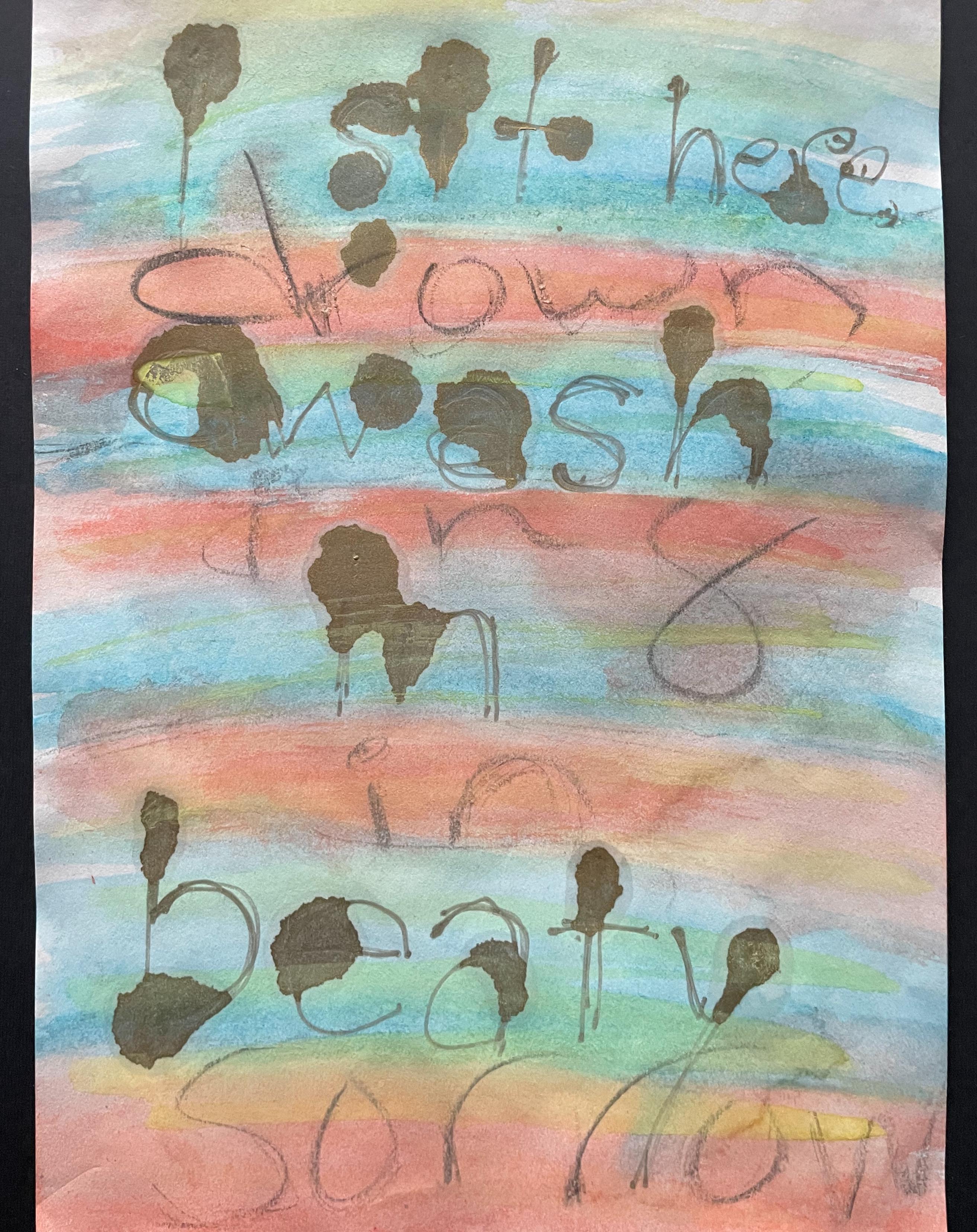 this is one that you mostly can make out the words but it's not to be read line by line. i did the words first then used watercolors on tops of them. and i love it.